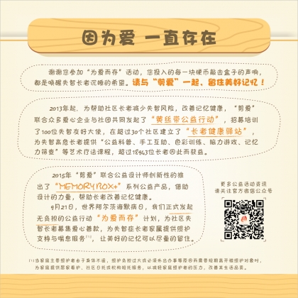 上海剪爱公益发展中心是一家致力于认知症预防及早期干预的非营利组织。中心于2013年4月26日正式登记注册,秉持“博爱、专业”的价值观,通过“2030脑健康计划”开发标准化剪纸艺术疗法、发起“黄手帕行动”、建立“记忆学堂”、研发“记忆盒子”,结合多种文化形式开展认知症的预防和早期干预,推动认知症友好化社区发展,让每一个认知症家庭享有尊严。