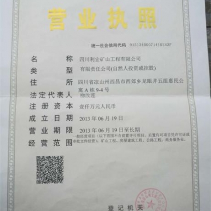 四川利宏矿山工程有限公司成立于2013年,注册资本金1000万元,公司注册地四川省凉山州西昌市,公司是矿山施工总承包企业,公司准备申请营业性爆破资质,招聘爆破工程技术人员中级1名,初级1名。...