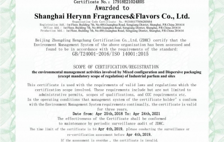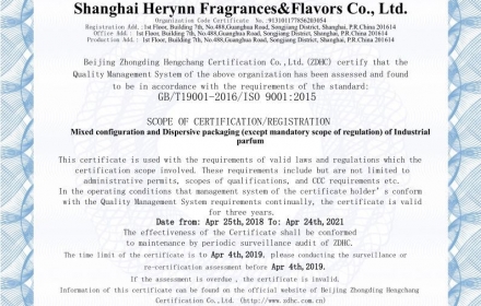 Bought Timile Fragrances in 2015. Mergered with Grace in 2016,set “Herynn”as the core brand. New manufacture center located in Shanghai Songjiang has 3000T annual capacity.