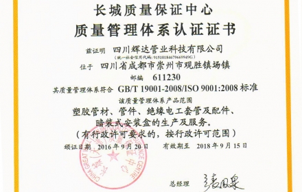 公司始终坚持以“产品、管理双输入”的方式,以市场为导向,客户为中心,质量为保障,一站式服务为基础,为客户提供多样化产品,为客户创造更大的价值空间。近几年来先后荣获中国环境标志产品认证、高新技术企业、新华节水产品认证、四川名牌产品、四川省著名商标、成都市企业技术中心、先进科学进步奖等荣誉称号;我公司迄今为止已获得31项专利知识产权,拥有自己的核心技术和产品研发中心与研发人员。同时还通过了IS09001-2008国际质量管理体系认证、IS014001环境管理体系认证、IS018001职业健康安全管理体系认证,并建立起了规范的现代化管理体系。