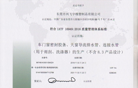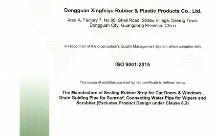 东莞市兴飞宇橡塑制品有限公司成立于2011年,专注各类橡胶、硅胶、塑胶件的生产制造,产品系列包括各类胶管、胶条及模压件.目前已广泛应用于汽车、新能源、集装箱、电力电信机柜、运动用品工程机械、电子电器等行业