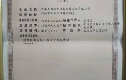 公司成立于2004年3月22日,注册资本人民币壹仟万元,公司资质:建筑机电安装工程专业承包贰级,主要经营:机电设备的安装。公司自经营以来,一直秉承高质量、高素质、高管理的理念,工程质量均得到业主们的一致好评。