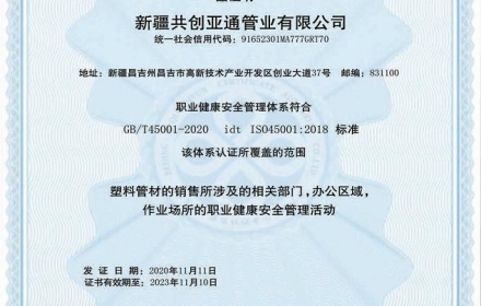 新疆共创亚通管业有限公司成立于2016年,是一家专业从事塑料管道产品研究和制造的新技术企业,主营产品主要用于市政建设(道路、通讯、电力、供水、排水、排污等基础建设设施)水务投资运营(市政供水、排污、输水管网改造)、建筑工程、农业节水排灌系统、现代园艺等各种领域,产品种类及配套齐全,位居同行业领先地位。