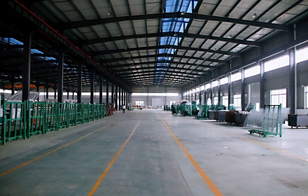 公司新建现代厂房30000平米,引进世界领先的玻璃加工设备,国内最大平弯一体化钢化生产线2条,全自动夹层玻璃生产线1条,高端幕墙中空玻璃生产线2条。其主导产品,超大弯钢化夹层玻璃最大尺寸可达3300mm*15000mm,在华中地区乃至全国独领风骚!